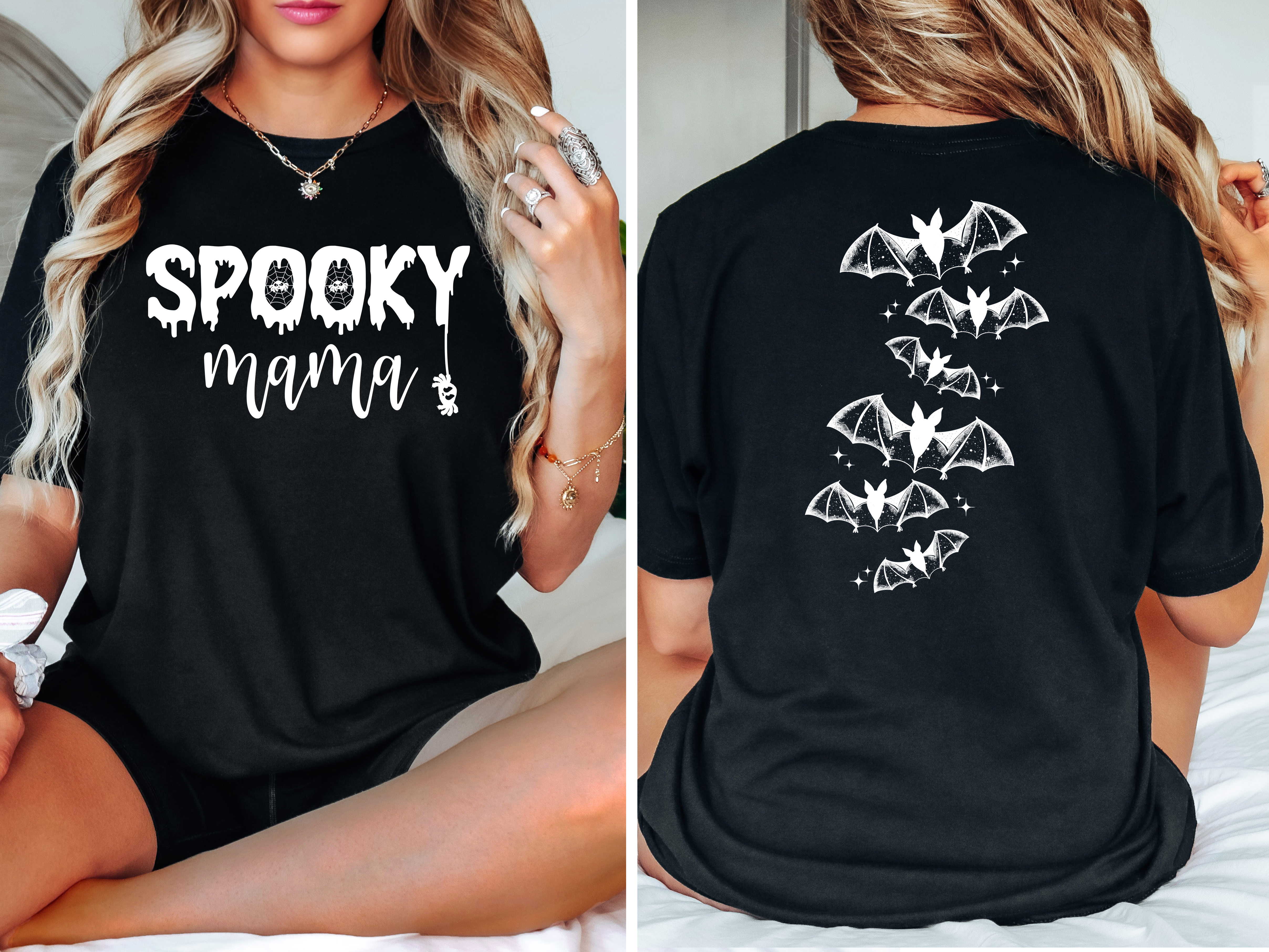 With its relaxed fit and versatile style, the Spooky Mama Halloween Shirt can be paired with jeans, leggings, or skirts, making it a versatile addition to your wardrobe. Whether you're attending a Halloween party, trick-or-treating with your little ones, or simply enjoying the festive atmosphere, this shirt is sure to make a statement and turn heads.