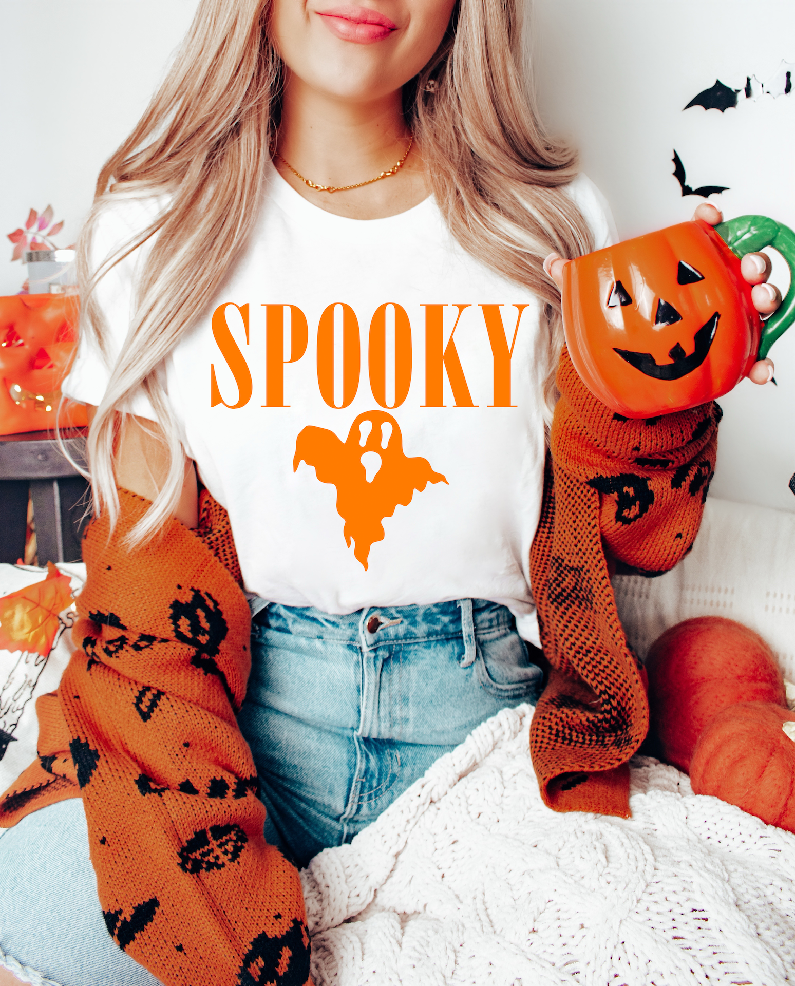 Get ready to embrace the spirit of the season with our spooky ghost t-shirt! This hauntingly adorable shirt is the perfect addition to your Halloween wardrobe or for any ghost-loving enthusiast.
