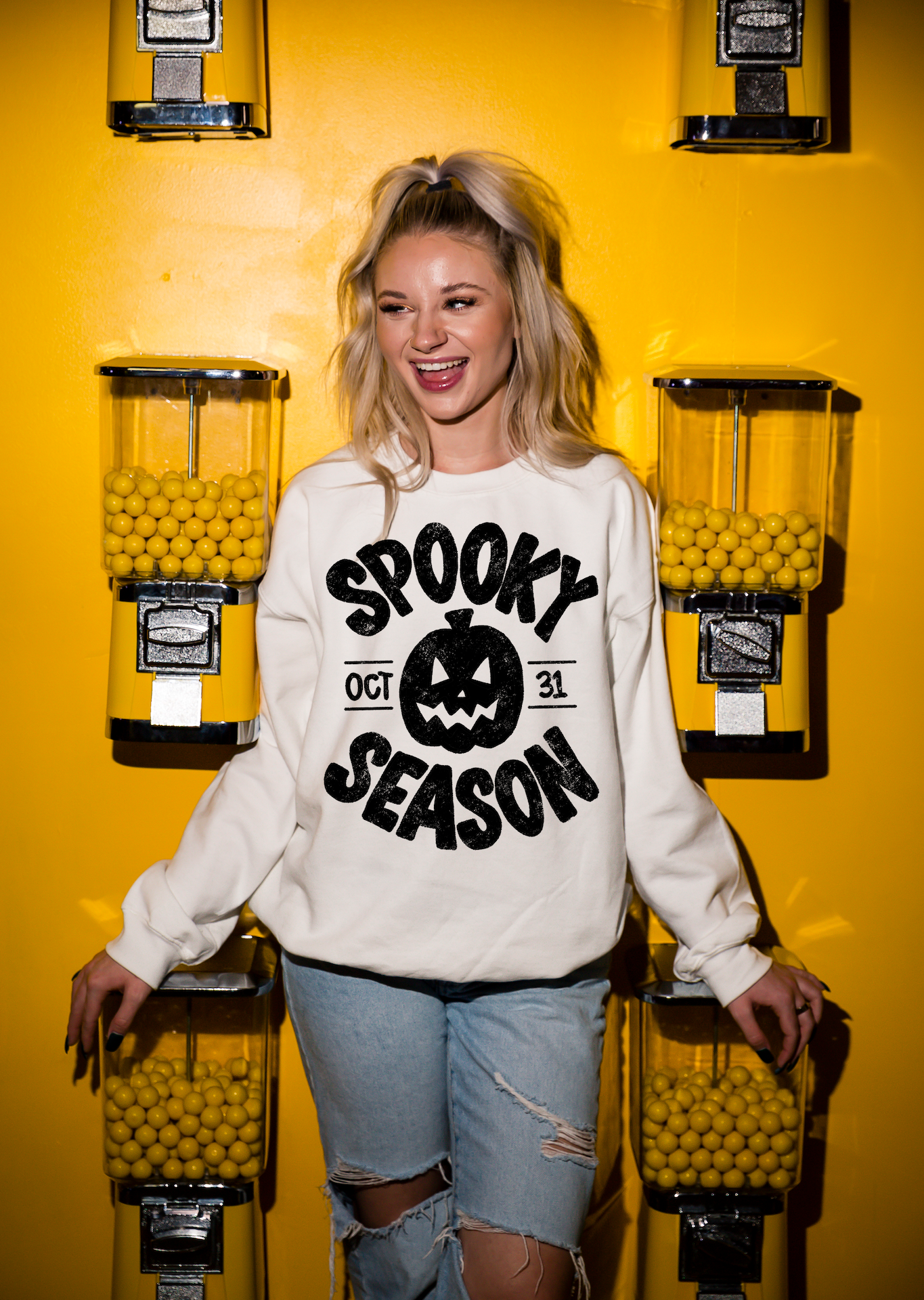 Whether you're attending Halloween parties, visiting haunted attractions, or simply enjoying the spooky season festivities, the Distressed Spooky Season Oversized Printed Sweatshirt is the perfect choice for those who want to showcase their love for all things eerie and mysterious.