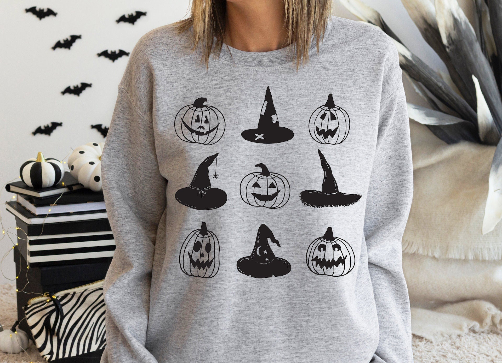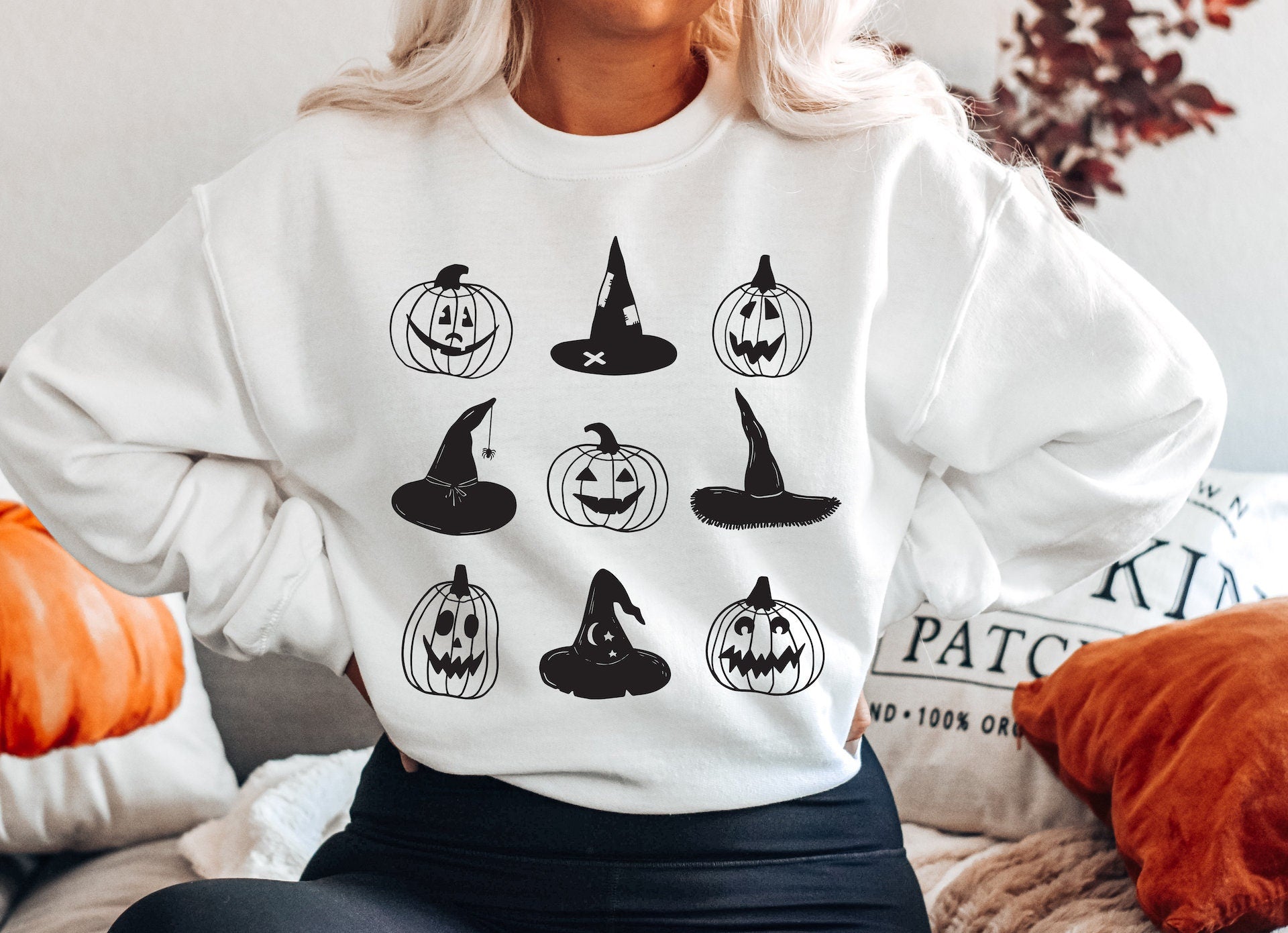 Witch Hat Pumpkin Doodle Gildan Softstyle Crewneck