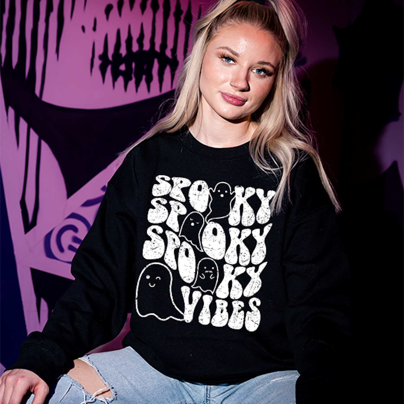 Distressed Retro Spooky Vibes Heavy Blend Sweatshirt