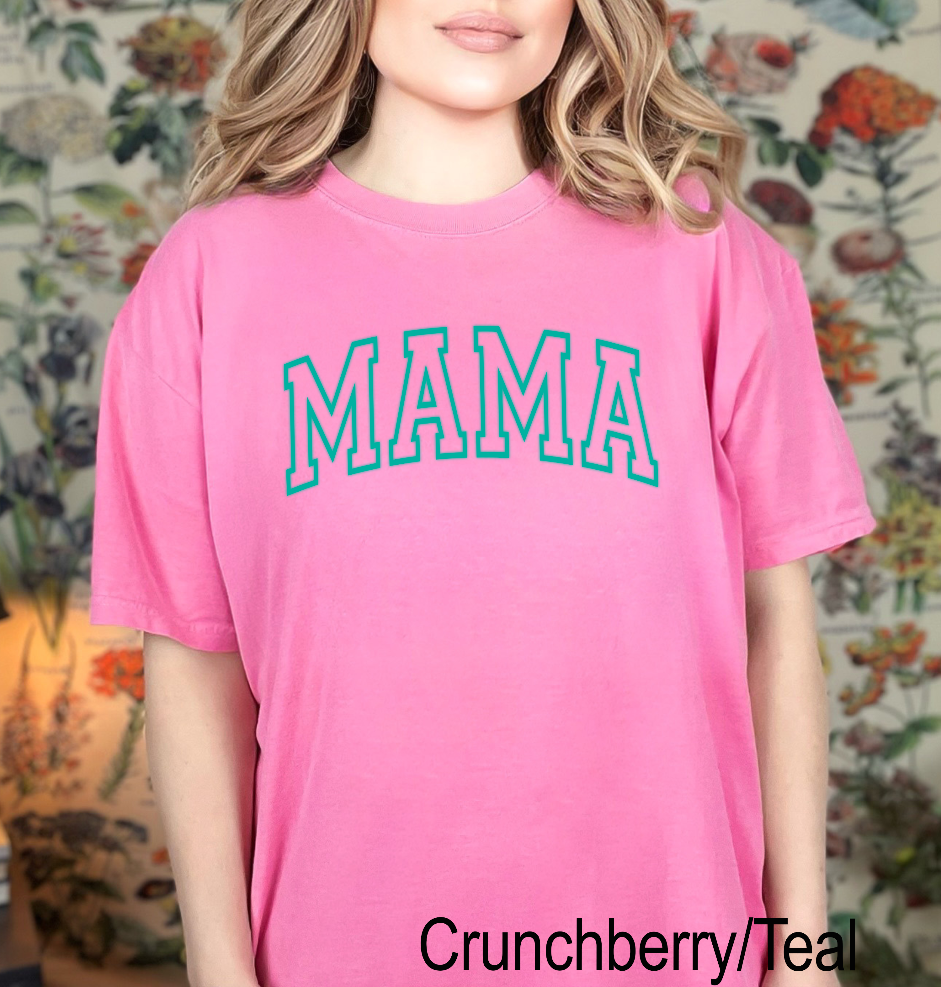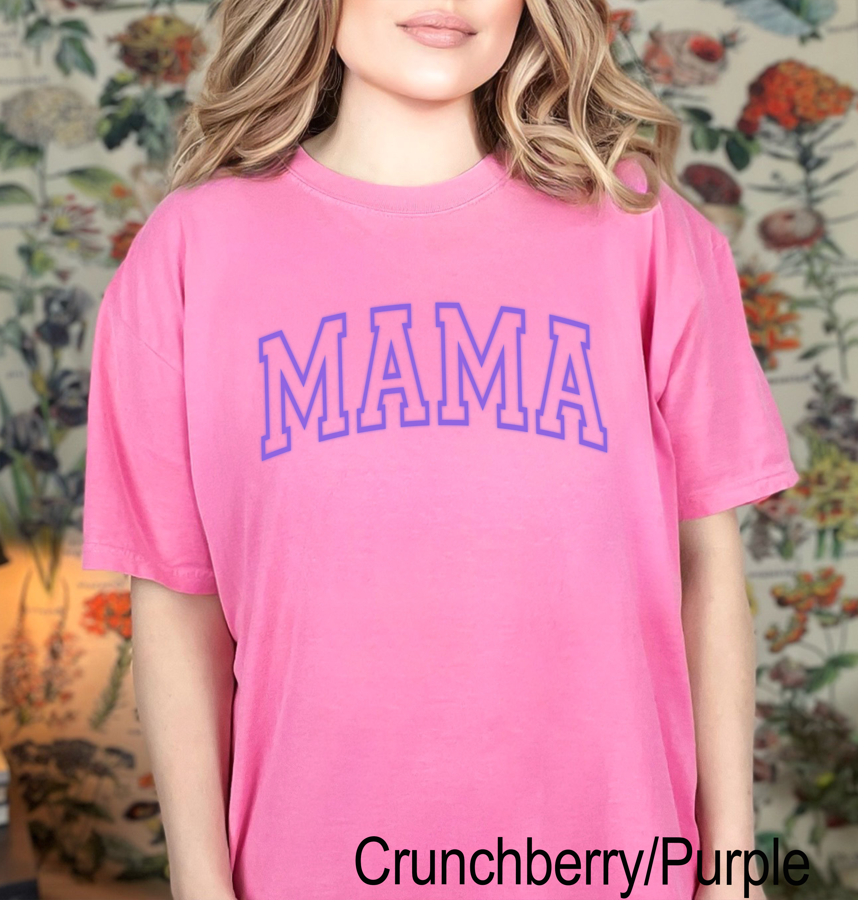 Featuring a unique and eye-catching puff print that reads "Mama," this shirt adds a touch of personality and style to your outfit. The print is carefully crafted to ensure that it stays vibrant and intact, even after multiple washes.