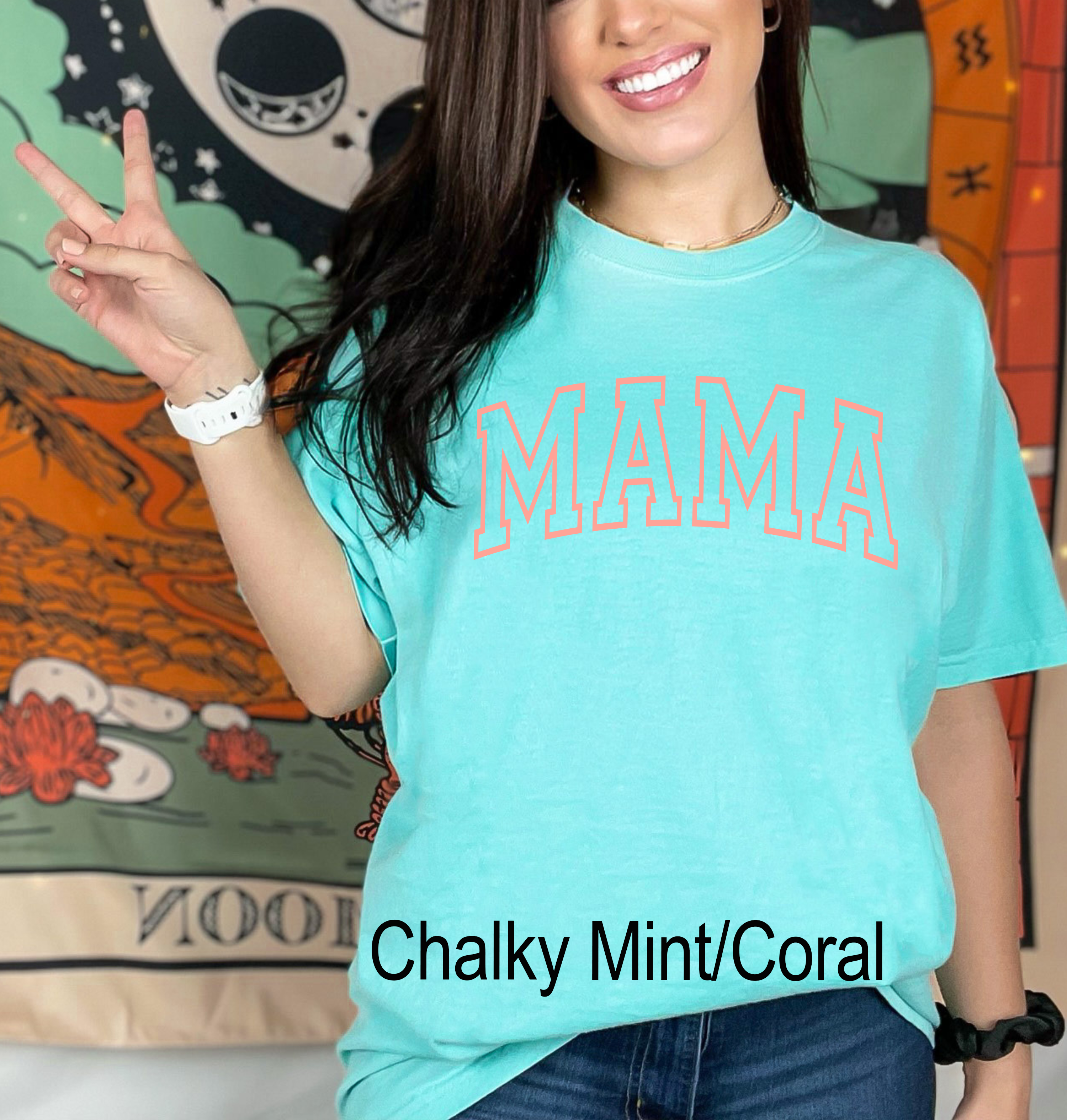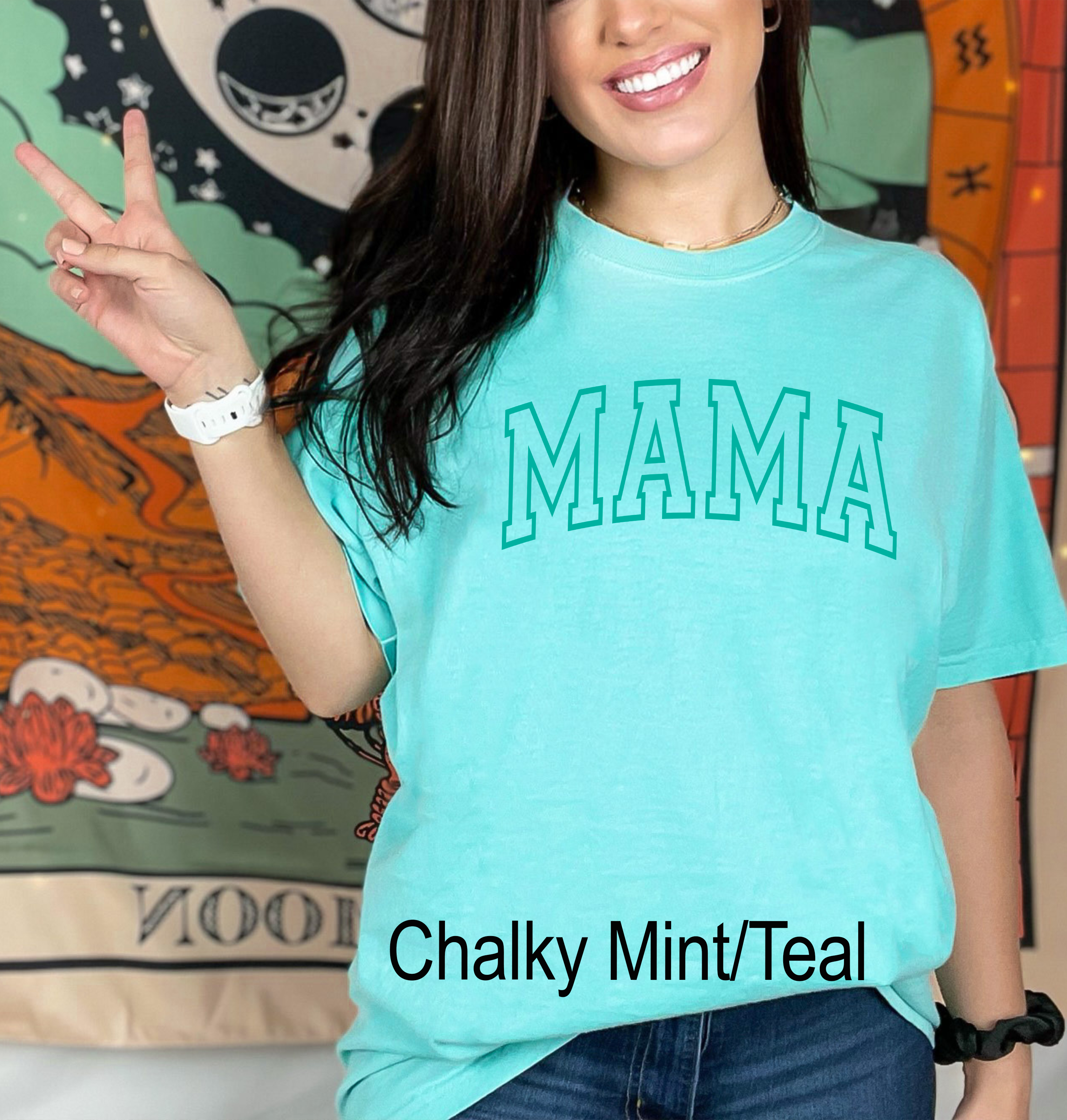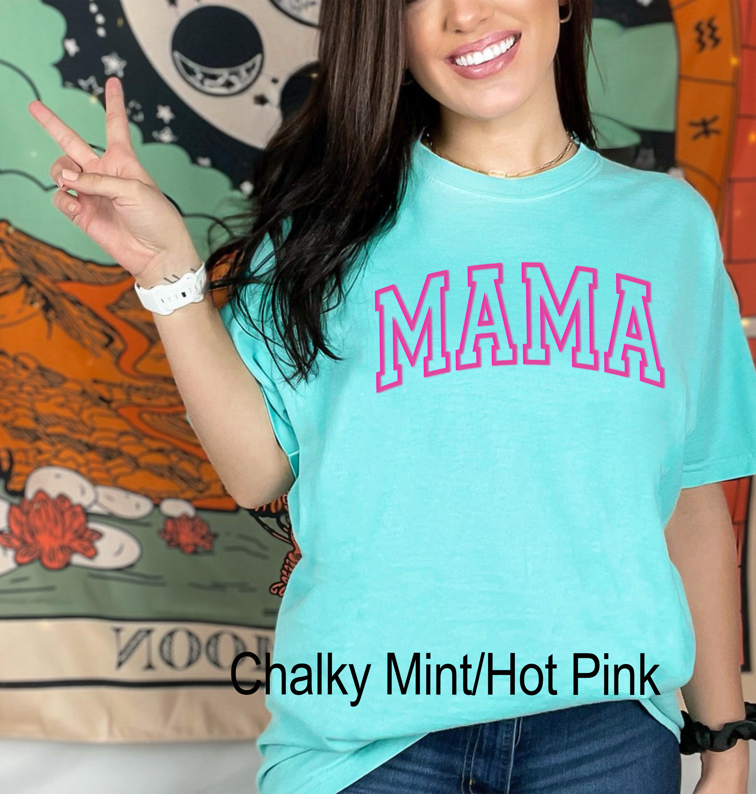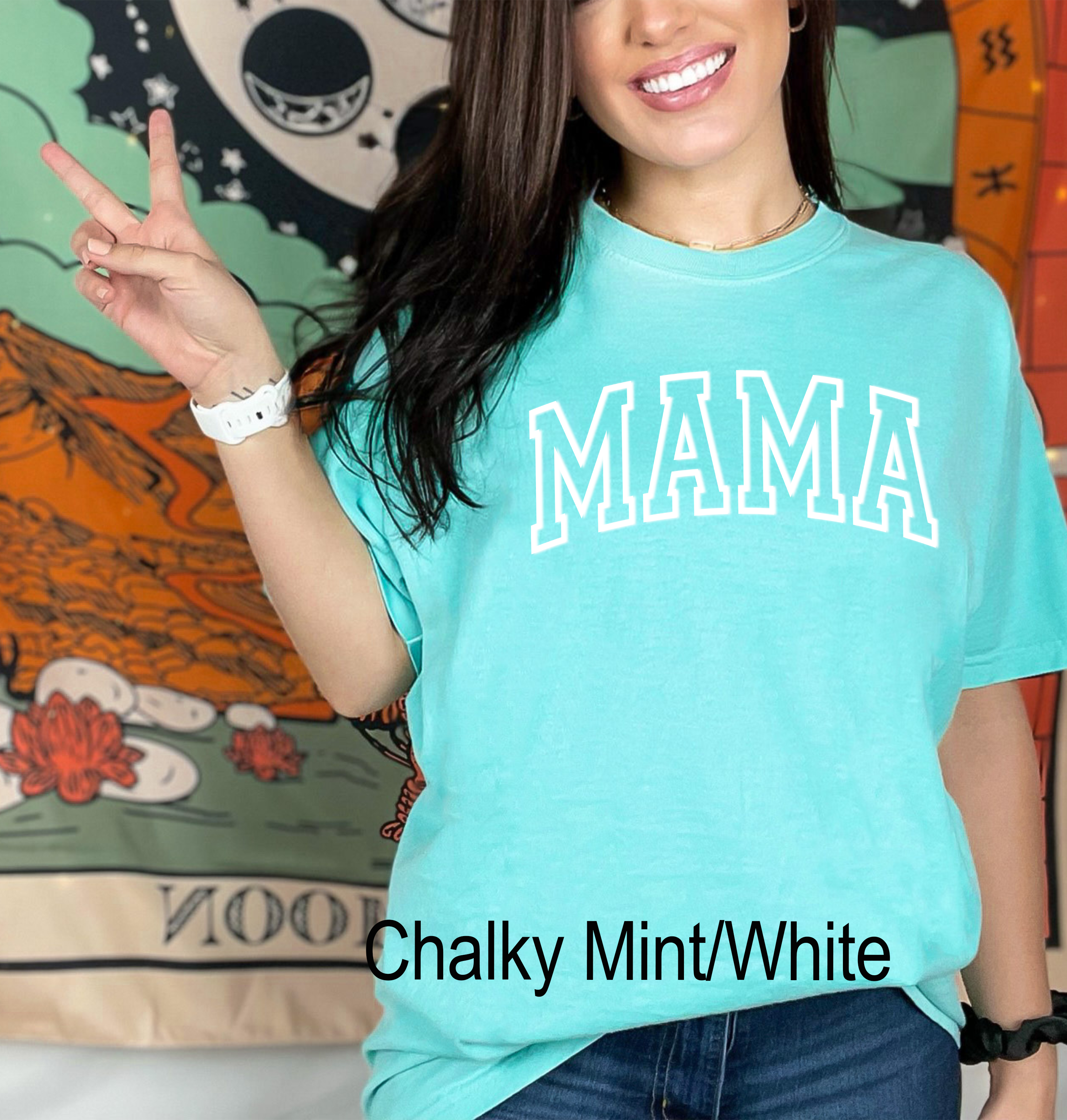 Featuring a unique and eye-catching puff print that reads "Mama," this shirt adds a touch of personality and style to your outfit. The print is carefully crafted to ensure that it stays vibrant and intact, even after multiple washes.