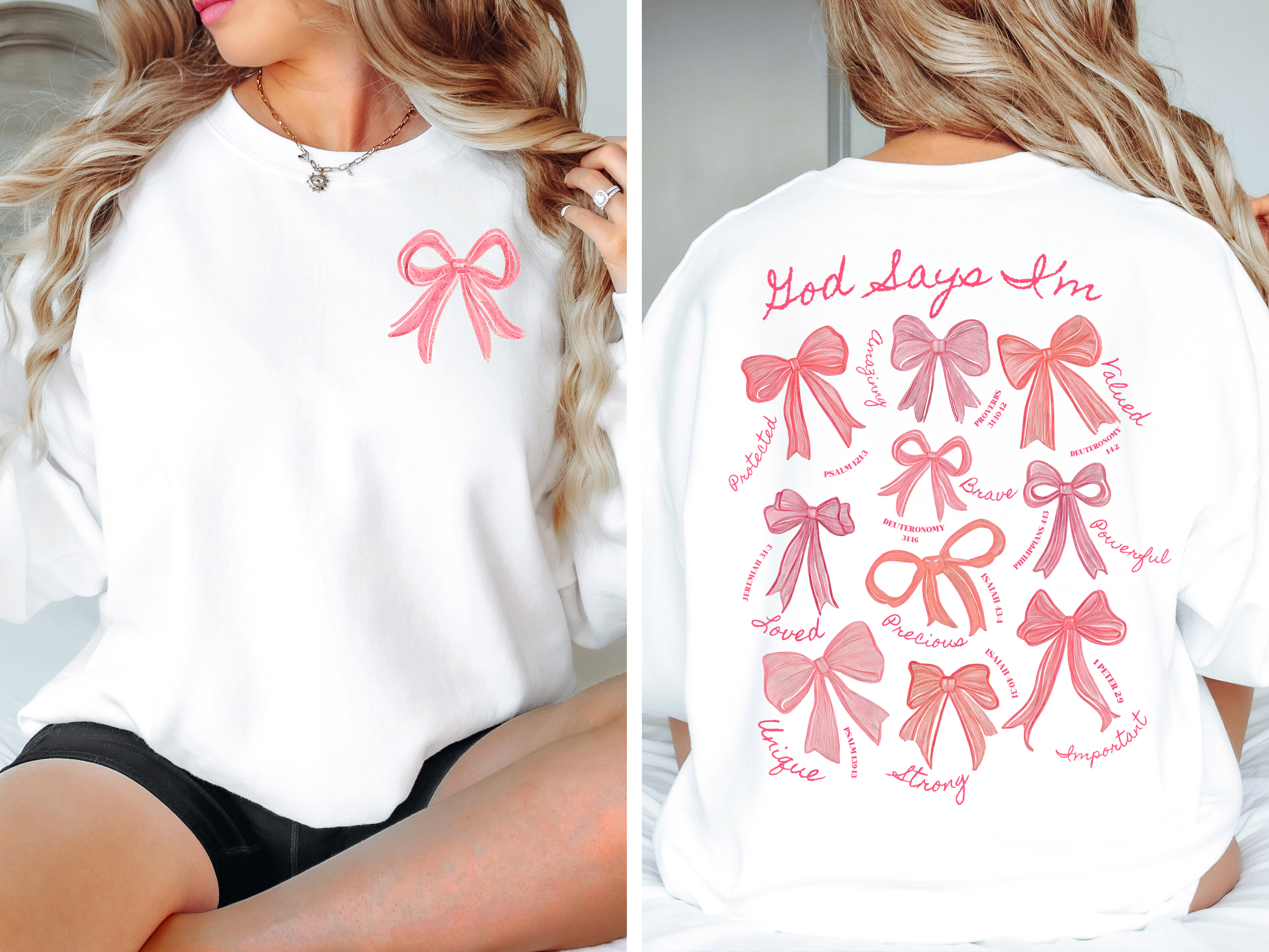 Valentine Coquette God Says Pink Bow Gildan T-shirt or Sweatshirt