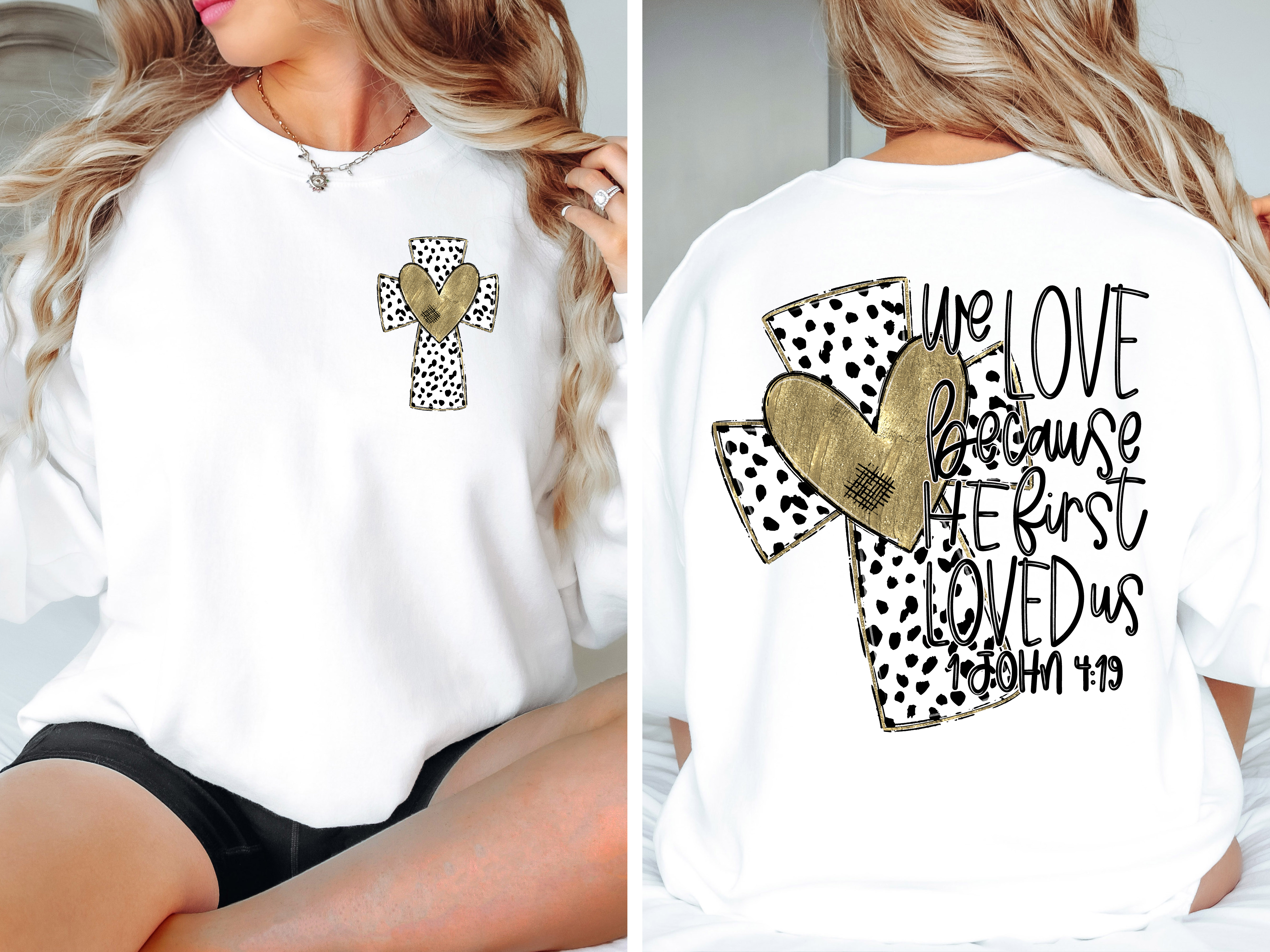 We Love Because He First Loved Us Verse Gildan T-shirt or Sweatshirt