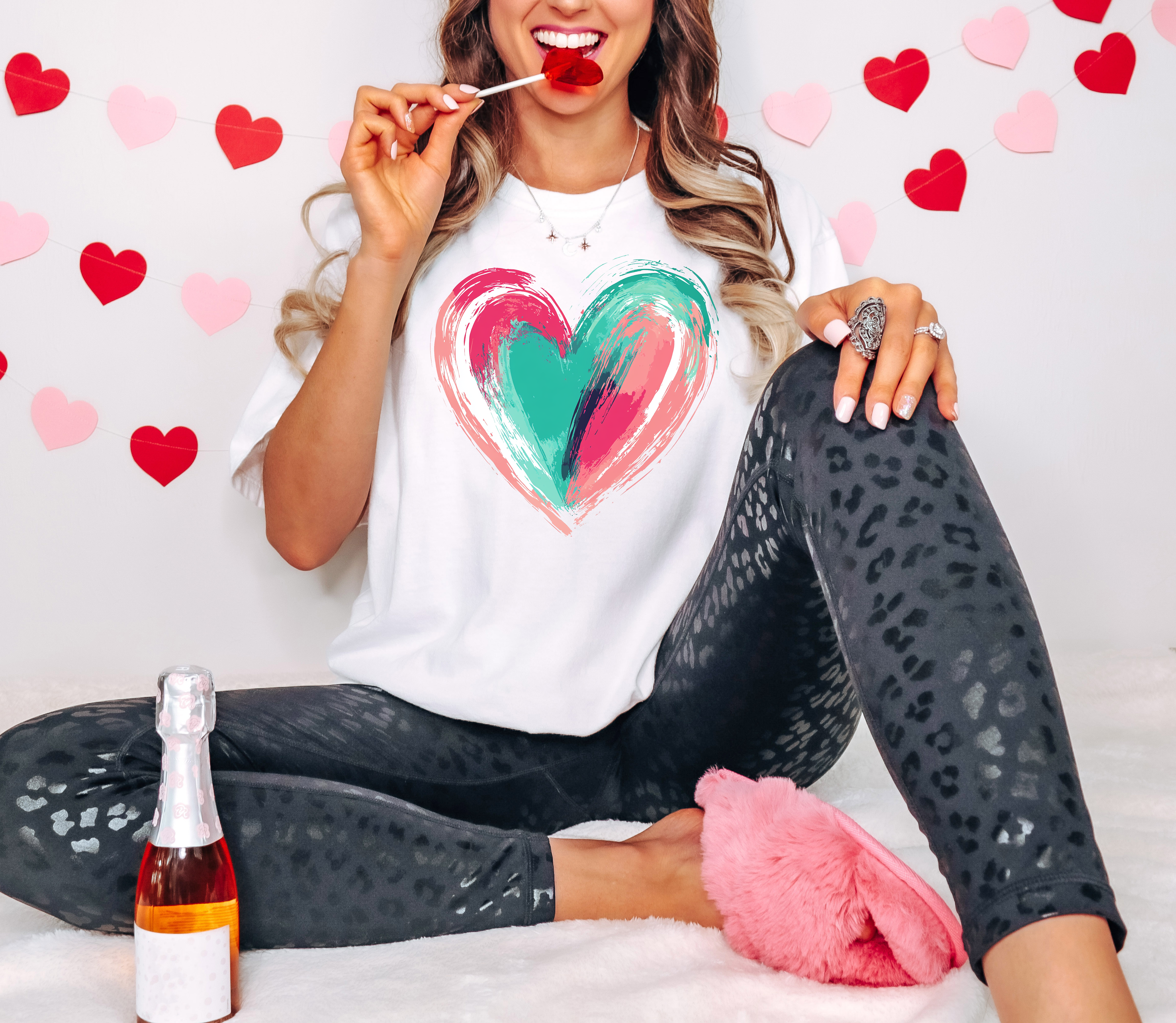 Valentine Pink Teal Heart Gildan T-shirt or Sweatshirt