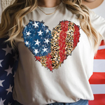 American Flag Heart Glitter Effect Bella Canvas T-Shirt
